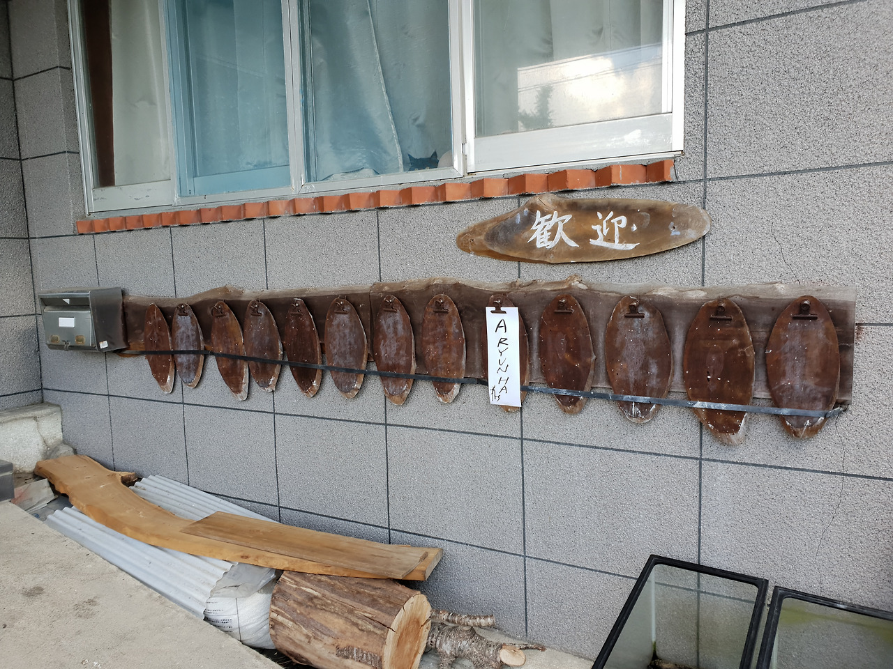 료칸 앞에 주차하니 사진으로 보아 마치 구면인듯한 아주머니께서 한달음에 나와 반겨주신다. 캐리어도 우리 대신 챙겨주시는데 료칸 입구에 걸린 숙박객 이름이 우리 밖에 없다. 그랬다, 무려 3개 층인 규모의 료칸에서 우리는 유일한 투숙객이었던 것. 료칸 주인의 영업은 조금 걱정됐지만 머무는 입장에서는 꽤나 반가웠다.