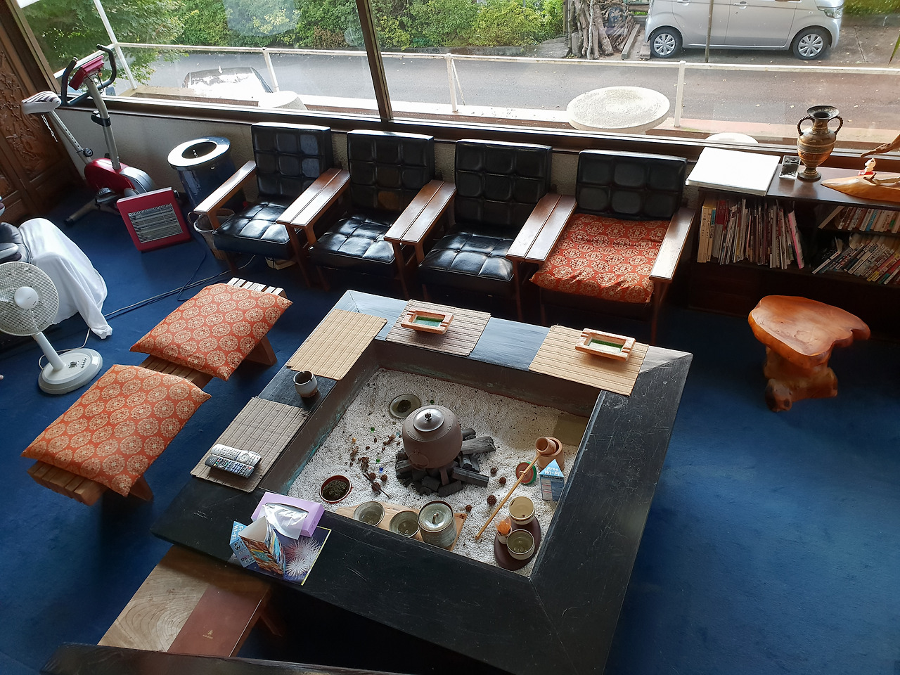 료칸의 계단에서 거실의 통유리창을 통해 보이는 경치와 공간의 느낌이 좋아 꽤나 부러웠다. 스쳐 지나가는 여행자라서 가질 수 있는 부러움이겠지.