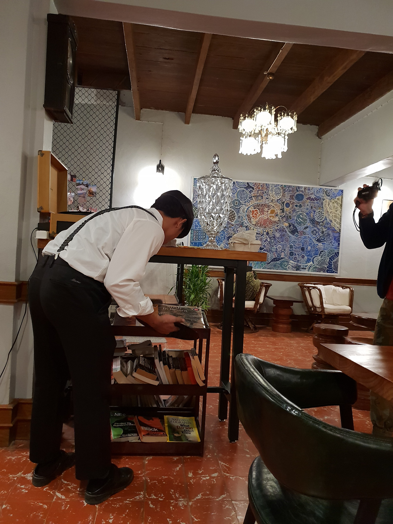 분위기 좋은 카페 겸 바와 신중히 LP를 고르는 존