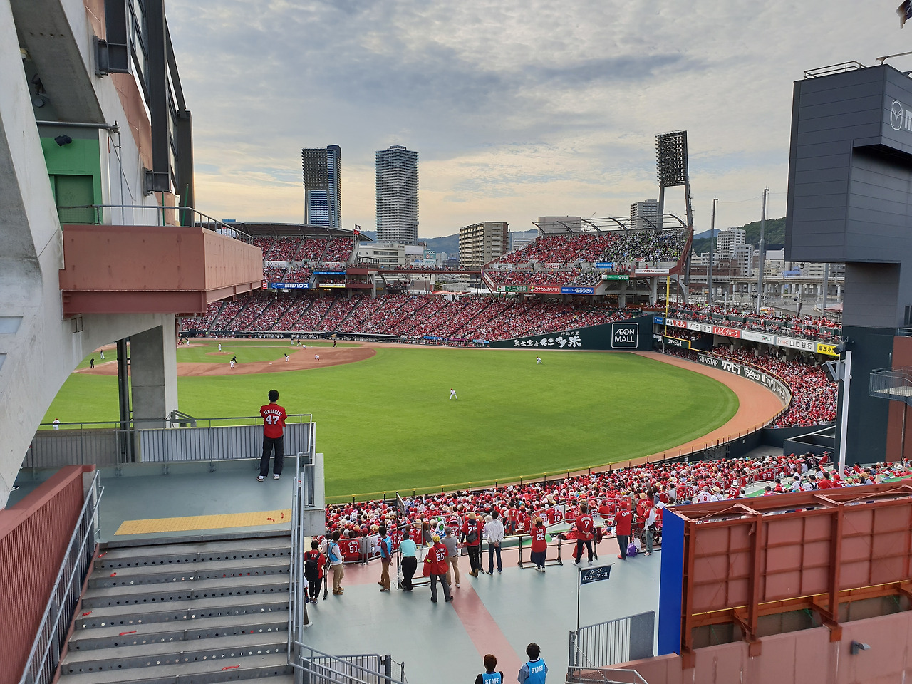 ***히로시마 도요 카프 구단과 마쓰다 줌줌 구장. 빨간색이 마스코트인 히로시마 카프에 대한 시민들의 애정은 대단하다. 식당이나 이자카야가 전부 카프로 도배된 곳도 있고 술잔, 슬리퍼, 사탕 등 그 무엇 하나 카프가 들어가지 않은 게 없다. 오랜 시간 리그 우승을 못하다가 최근 몇 년간 우승을 했다고 들었다. 마쓰다 줌줌 구장은 코스트코 히로시마점과 나란히 있어서 주차장에서 구장 안이 보인다.
