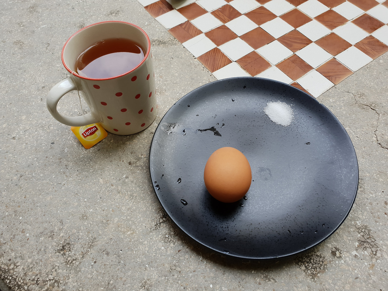 매일 시간을 보낸 부위기 좋은 중정과 단촐한 나의 조식, 그리고 1,000원 짜리 카오삐약