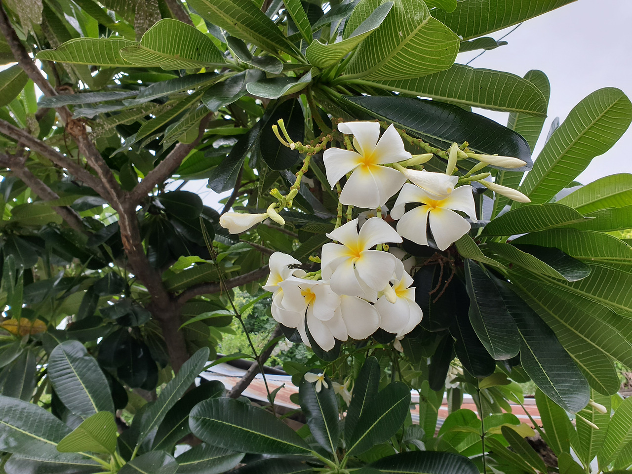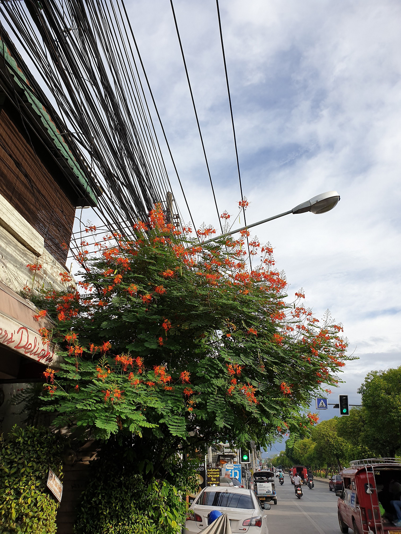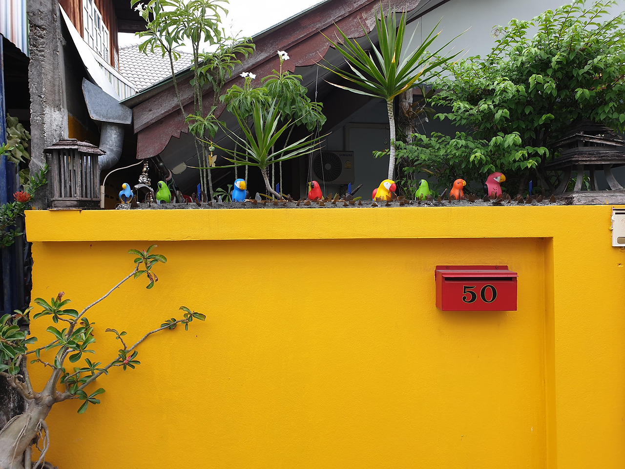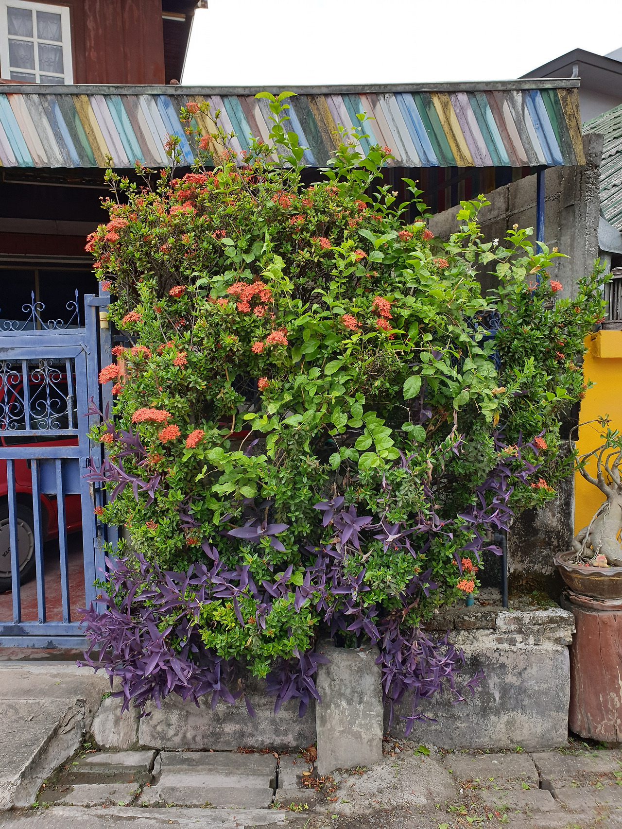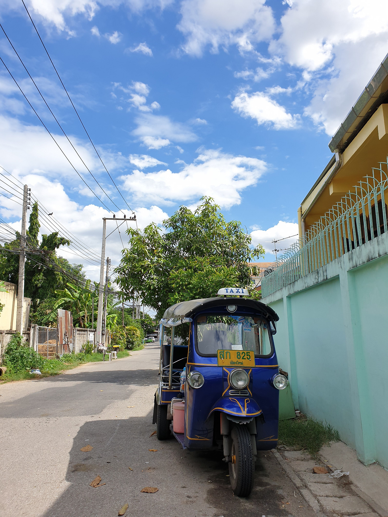 치앙마이의 골목의 꽃, 담장과 하늘