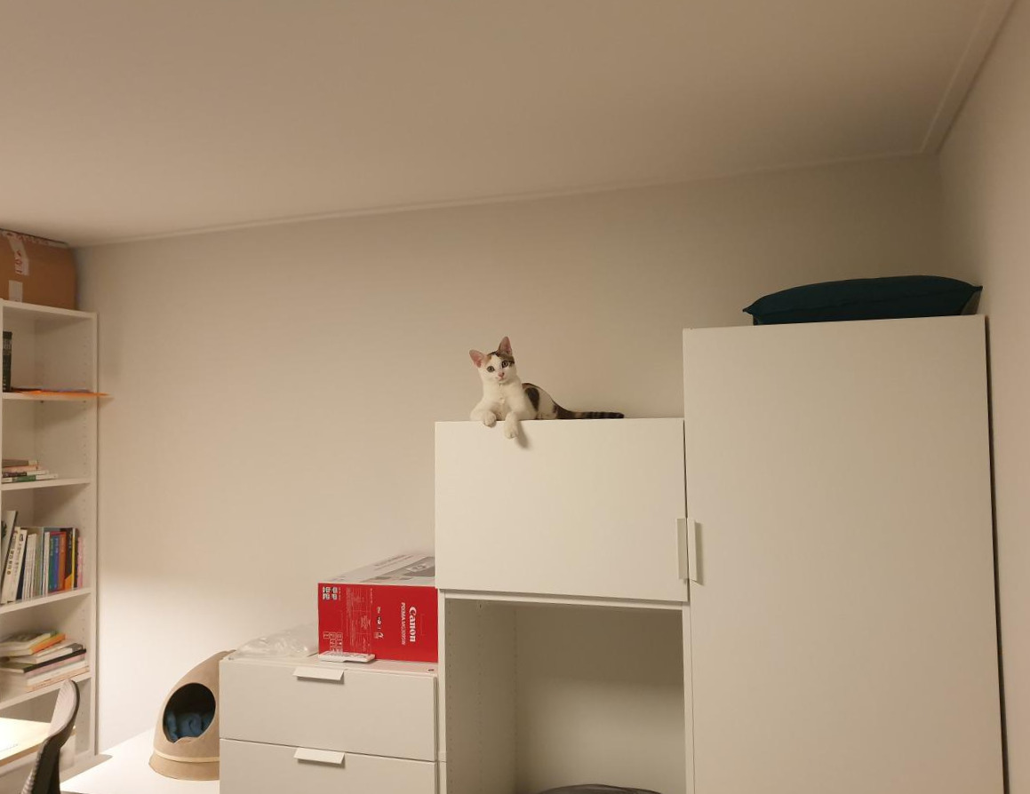 고양이와 함께 새로운 집으로 이사하면서 주로 활동할 공간과 제한할 공간을 우선 정했다. 보아하니 우리집 고양이 쏘이는 그리 독립적으로 생활하지 않았다. 고양이답게 혼자만의 시간을 갖긴 했지만 함께하기를 요구할 때가 더 많았다. 잠을 자거나 편안히 쉬는 시간에도 우리와 같은 공간에서 지냈다. 시도 때도 없이 무릎에 올라오는 무릎냥이는 아니지만 개냥이라면 개냥이랄까. 반려인들이 주로 자고 생활할 공간을 정하면 쏘이도 그걸 따를 게 분명해 보였다. 그래서 우리는 안방과 거실을 주로 생활할 공간으로 정하고 나머지 두 방은 드레스룸과 게스트룸으로 정했다.