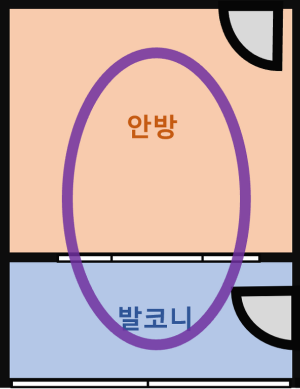 안방과 발코니 새시를 할 때 창을 양쪽으로 열 수 있게 해서 드나드는 곳을 두 곳으로 만들었다. 그러면 원형, 팔자형으로 움직일 수 있다. 쏘이가 우다다 하거나 사냥 놀이할 때의 모습을 보면 매번 정해진대로 움직이지 않고 다양한 동선을 활용한다. 발코니와 거실을 오고 갈 때도 최단거리인 문을 통하지 않고 안방을 거쳐 돌아가기도 한다. 망아지처럼 온 집안을 뛰어다닐 때 보면 들어간 곳으로 도로 나오기보다는 계속해서 새로운 경로로 이어 달리는 모습을 볼 수 있다. 집사 입장에서도 공 던지기 같은 놀이를 할 때 다양한 방향으로 던질 수 있어 덜 지루하다.(덜 지루한 것이지 지루하지 않은 건 아니다.)