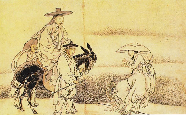 또한 등짐을 진 사람은 갓을 쓴 것으로 보아 노비나 짐꾼이 아니라 아전일 것이다.