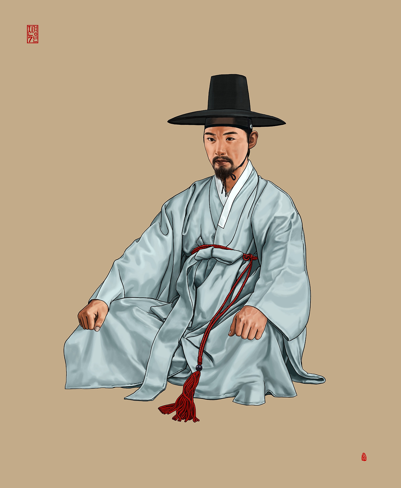 [선비 정좌/심규섭/디지털그림/2020. 한복은 몸이 아니라 인격을 드러내는 예의 옷이다.]