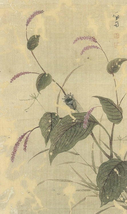 [겸재 정선/홍료추선(紅蓼秋蟬)/비단에 채색/20.3*30.5cm/1742, 간송미술관.