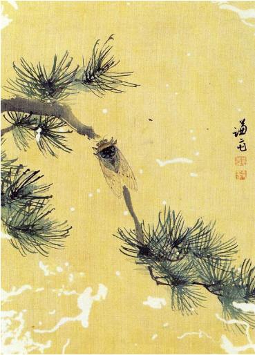 [겸재 정선/송림한선도松林寒蟬圖, 매미/비단에 담채/21.3×29.5cm/18세기/조선/간송미술관 소장.