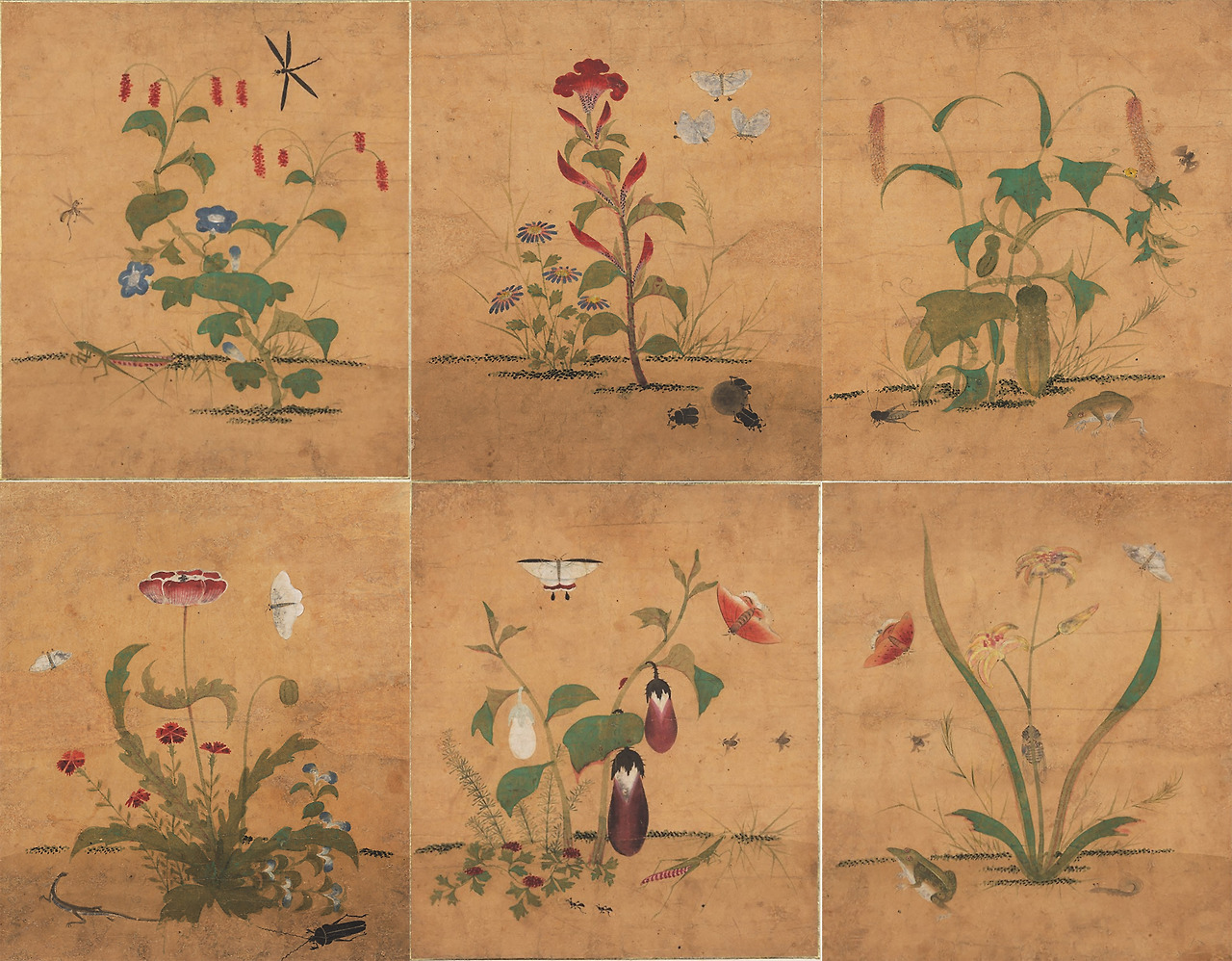 신사임당이 그렸다고 전하는 초충도에는 다양한 풀과 꽃, 곤충이 표현되어 있다. 사람 주변에서 쉽게 관찰되는 풀과 곤충에는 다양한 상징이 붙어있다. 그림의 뜻을 알지 못해도 상관없다. 보고 있으면 마음에 편해진다. 독립된 회화작품이면서 수예나 가구 장식에 쓰이는 바탕그림의 역할도 했다.]