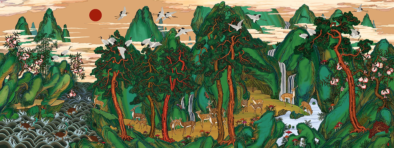 십장생도, 해학반도도와 같은 병풍그림부터 산수화, 신선도, 화조도, 영모화(개, 닭, 독수리, 고양이 따위의 동물그림), 용, 해태와 같은 서수도(瑞獸圖) 따위를 모두 포함했지.