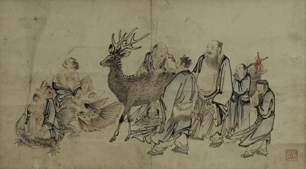 [단원 김홍도의 군선도. 조선에서는 중국의 신선을 군자의 상징으로 수용했다. 탐욕을 버리고 백성을 도우는 신선의 풍모는 군자와 같았기 때문이다. 세화는 양심의 내용을 담은 정치적인 그림으로 쉬우면서도 대중의 정서를 자극하는 그림이 많았다.]