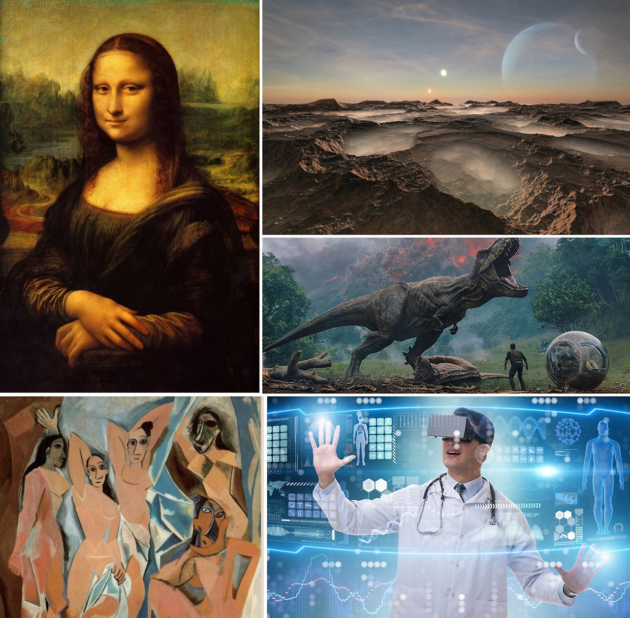 레오나르도 다빈치의 모나리자, 피카소의 입체파 작품이 명작이 된 것은 시공간을 확장했기 때문일세. 모나리자는 실내 인물과 야외 배경을 결합하여 새로운 시공간을 창조했지. 피카소는 사물의 모든 방향에서 보는 작품으로 시공간을 확장했네.