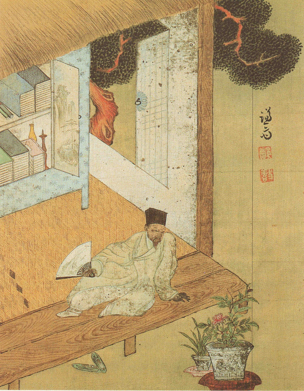 겸재 정선은 독서를 하다 쉴 겸 부채를 들고 마루에 나와 앉았다.