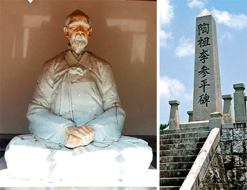 [일본 아리타에 있는 이삼평 조각상과 기념비. 조선 도공 이삼평은 일본 도자기의 신으로 불린다.]