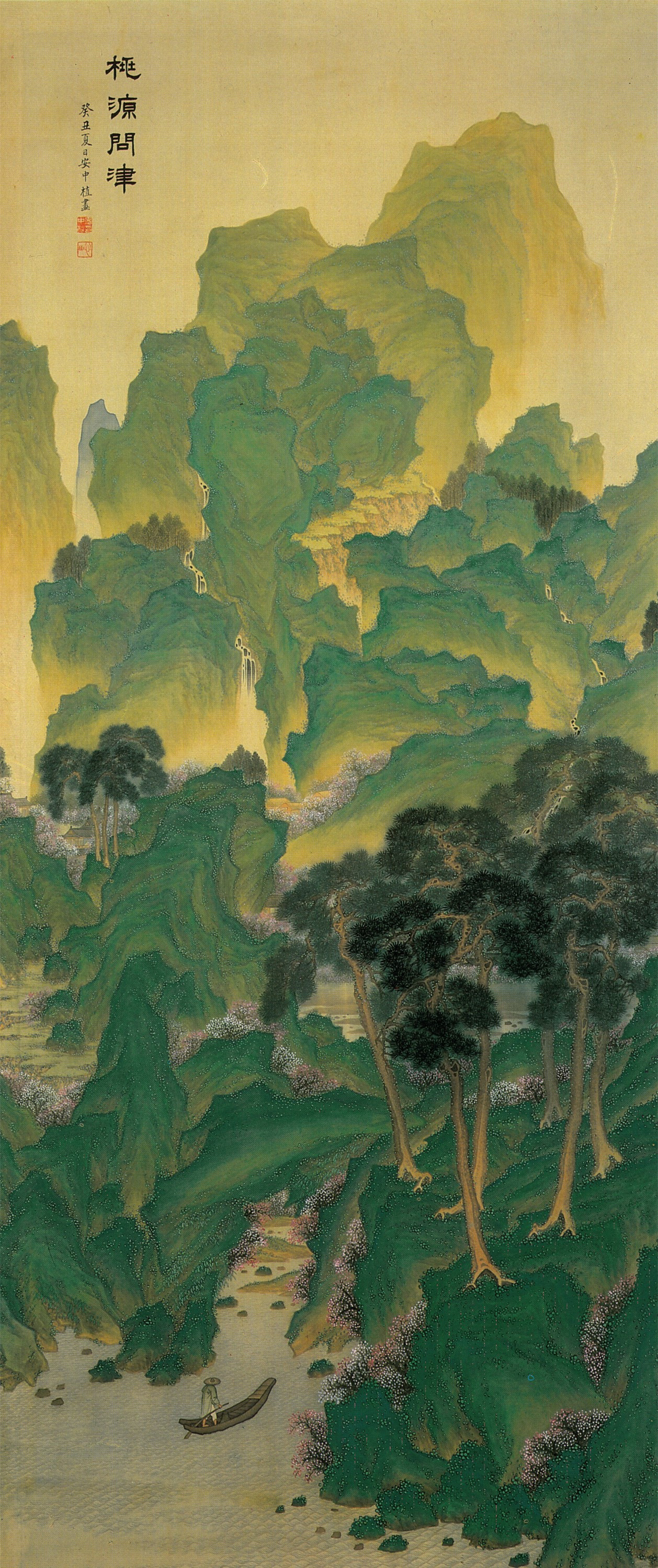 [안중식/도원문진도/비단에 채색/164*70.4cm/1913년/리움미술관 소장. 도원문진은 도원에 들어가는 곳을 묻는다는 뜻이다. 조선이 망한 후, 새로운 이상향을 찾기 위한 발버둥이 담긴 작품이다.]