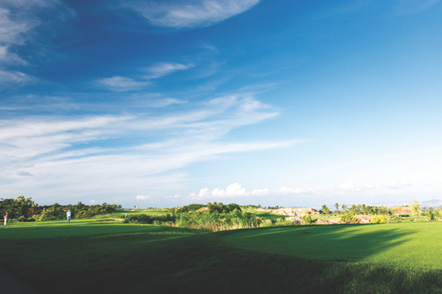하늘코스는 ‘벤트그래스 페어웨이’로도 유명합니다. 보통 골프장들이 그린 잔디로 사용하는 섬세한 양잔디 품종인 벤트그래스를 이 코스에서는 페어웨이에 깔았습니다. ‘제주나인브릿지’에서 페어웨이에 벤트그래스를 사용한 이후 제주 이외 지역에서는 최초의 시도였고, 퍼블릭 골프장에서는 상상도 못하던 모험적인 사건이었습니다.