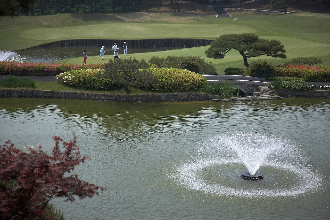해발 120미터 낮은 구릉 위의 클럽하우스에서 내려다보이는 코스는 울창한 소나무와 잣나무 숲 속에 홀마다 독립적이며 광활하다.