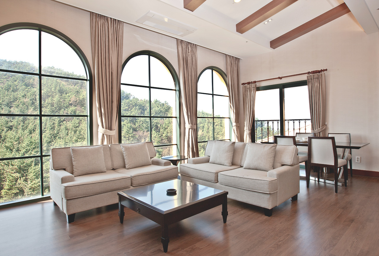 투스카니 지역의 대저택을 콘셉트로 한 건축물이라는데, 햇빛이 많이 드는 자리라서 잘 어울린다. 한화그룹 계열 플라자호텔이 담당하는 특급호텔 수준의 편의 시설과 식음 서비스를 갖추었다.