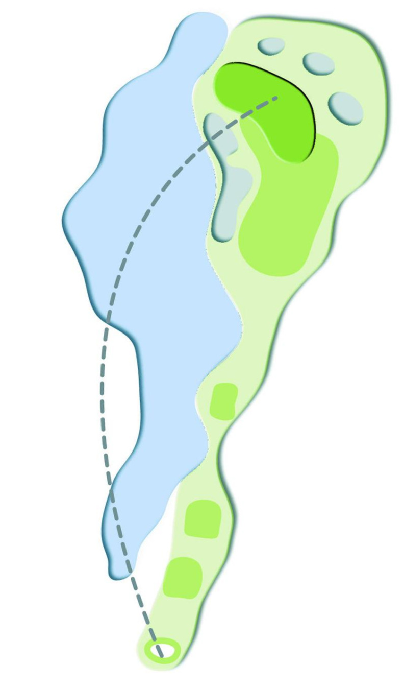 티잉 구역 왼쪽부터 그린 끝까지 길게 이어진 호수가 있다. 홀을 정확하게 노리려면 비구선이 호수를 건너는 티샷을 해야 한다. 긴 거리와 그린에 바투 붙은 호수가 부담되는 파3 홀이며, 바람도 부는 자리이므로 클럽 선택과 공략 방향 등을 선명히 정하고 플레이해야 한다. 기량이 좋은 골퍼라면, 깃대가 꽂힌 위치에 따라 다른 기술의 샷을 시도할 것이다.