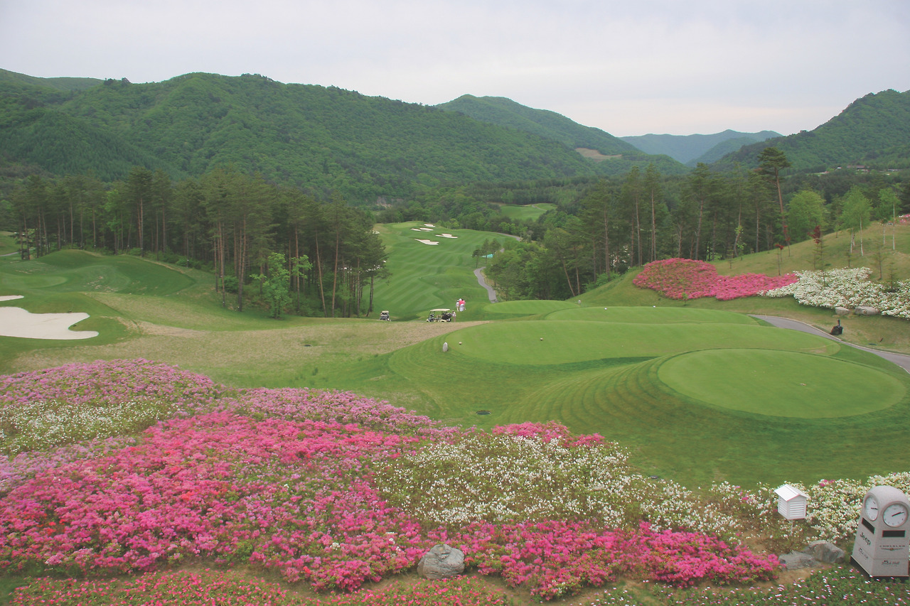 용평 발왕산 기슭의 자연을 그대로 살려 18홀 코스에서 변주하고 있는데, 골프코스의 관념적 형식에 얽매이지 않고(덜 얽매여) 자유분방하다. 자연이라는 생명체를 18홀 내내 강렬하게 마주하며 싸우고 교감하게 된다.