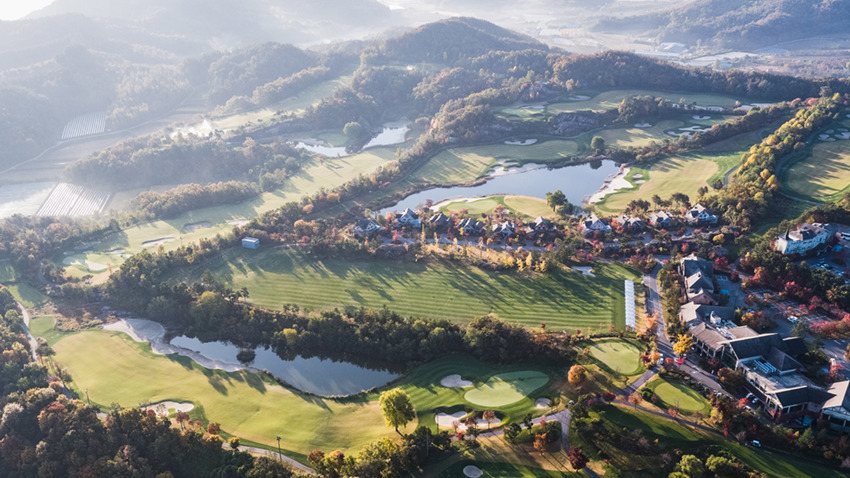 골프로 해가 뜨고 동반자들의 모임으로 해가 지는...... 그런 가운데 골프라는 경기가 가진 서구적 정취와 한국 산중의 수려한 풍치가 어우러진 낭만적인 장원(莊園)을 꿈꾸었을 것입니다. 18홀의 모험심 가득한 코스와 동화 같은 별장 숙소를 갖춘 이 골프 리조트는, 2008년 야심차게 문을 열어 많은 골퍼들 마음을 설레게 합니다.