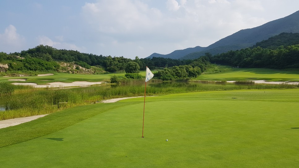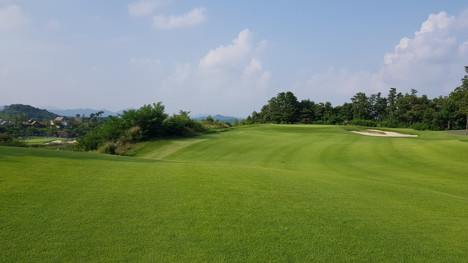비록 정규 대회는 아니지만 골프채널에서 방영되는 <고교동창골프대회>가 지속적으로 열리는 곳인 만큼 잔디 상태가 고르고 잘 정돈되는 편입니다. 잔디 상태는 날씨에 따라 언제든 달라질 수 있으나 우리나라 기후에 가장 잘 견디는 ‘중지’를 사용하였기에 관리상의 변수가 적은 편이겠습니다. 중지는 양잔디보다 잎 면이 넓지만 우리나라 들녘에 야생하는 들잔디(야지)보다는 가늘어 ‘중간 넓이 잎의 잔디’라는 뜻입니다. 안양CC에서 선별하여 개량한 종을 ‘안양중지’라고 하며, 장성중지는 안양중지와 비슷하되 장성 지방에서 나는 중지 특성을 가진 잔디를 말합니다. 우리나라 골프장들이 가장 많이 쓰는 잔디가 이 ‘장성중지’라 합니다. 날이 추워지면 생장을 멈추고 누렇게 변하지만 한여름 기후를 잘 견디기에 관리하기에 편합니다.