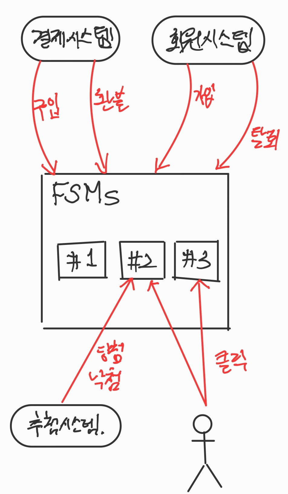의 데이터로 이벤트를 발생시켜 주면, 그 고객이 이미 응모를 해서 joined 상태였다면, bought 상태로 넘어갈 수 있는 거야. (모든 FSM ID에 대해 발생시켜도 돼. 안 맞으면 그냥 무시될 테니까)