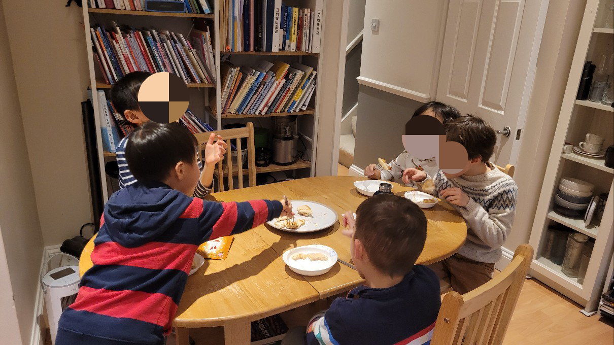 어제는 꼬마 손님들이 많이 왔다. 둘째도 일곱 살이 되고 나서 플레이 데이트가 생기고, 첫째도 친한 삼총사 친구가 생겨서 서로의 집에서 같이 놀곤 하는데 날짜를 잡다 보니 어제 다 모이게 되었다. 하교시간에 맞추어 학교에 가서 아이들 다섯 명을 데리고 집으로 왔다.
