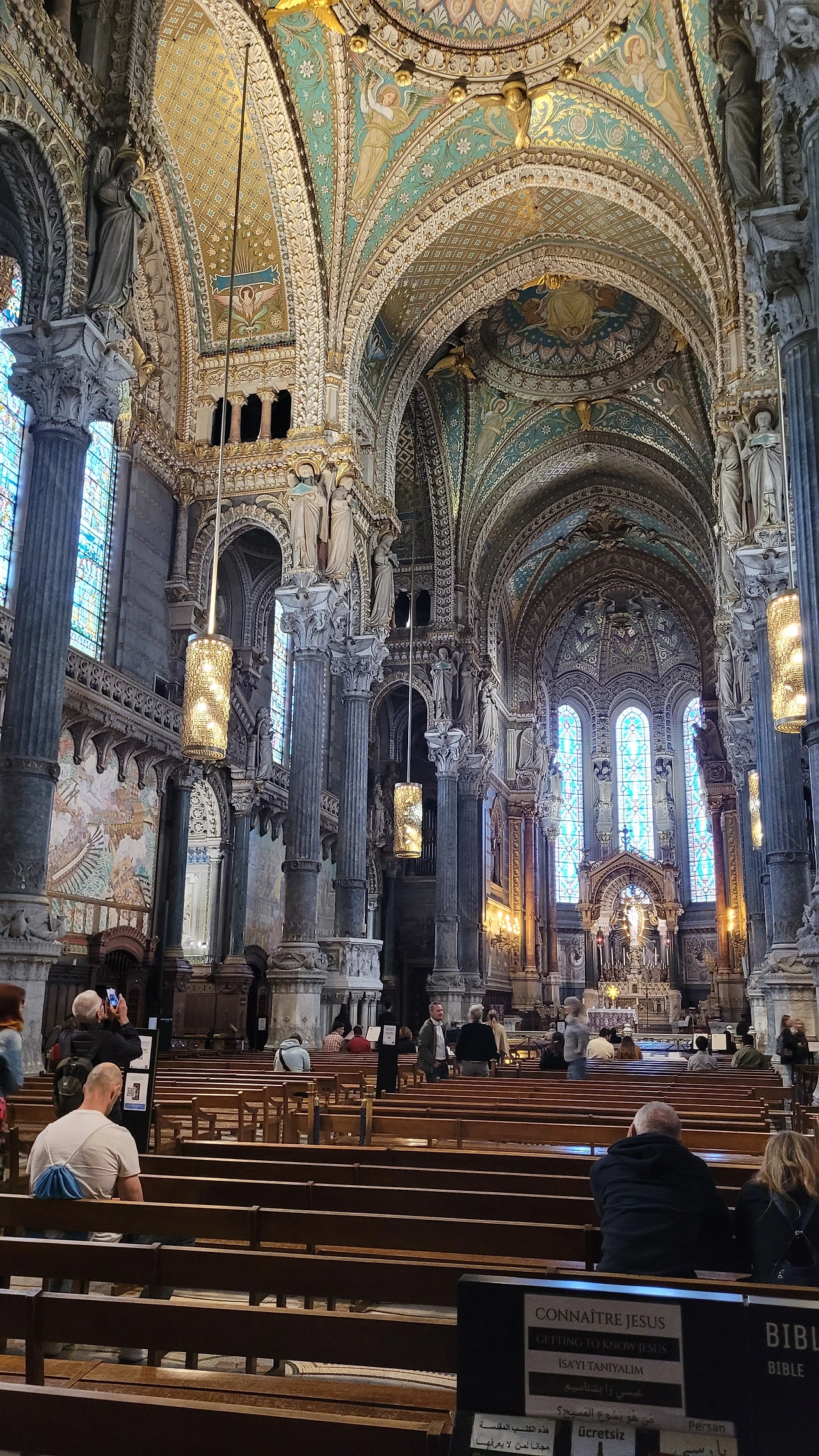 이 중 푸비에르 노트르담 성당은 내가 지금껏 본 성당 중 가장 화려한 성당이었다. 천장을 보면 천장도 화려하고 조명도 화려하고 스테인드글라스도 화려하고 솔직히 과하다. 경건한 마음으로 기도가 나오지 않을 것 같은;; 하지만 다음 날 오전에 미사를 드리러 옴. :)