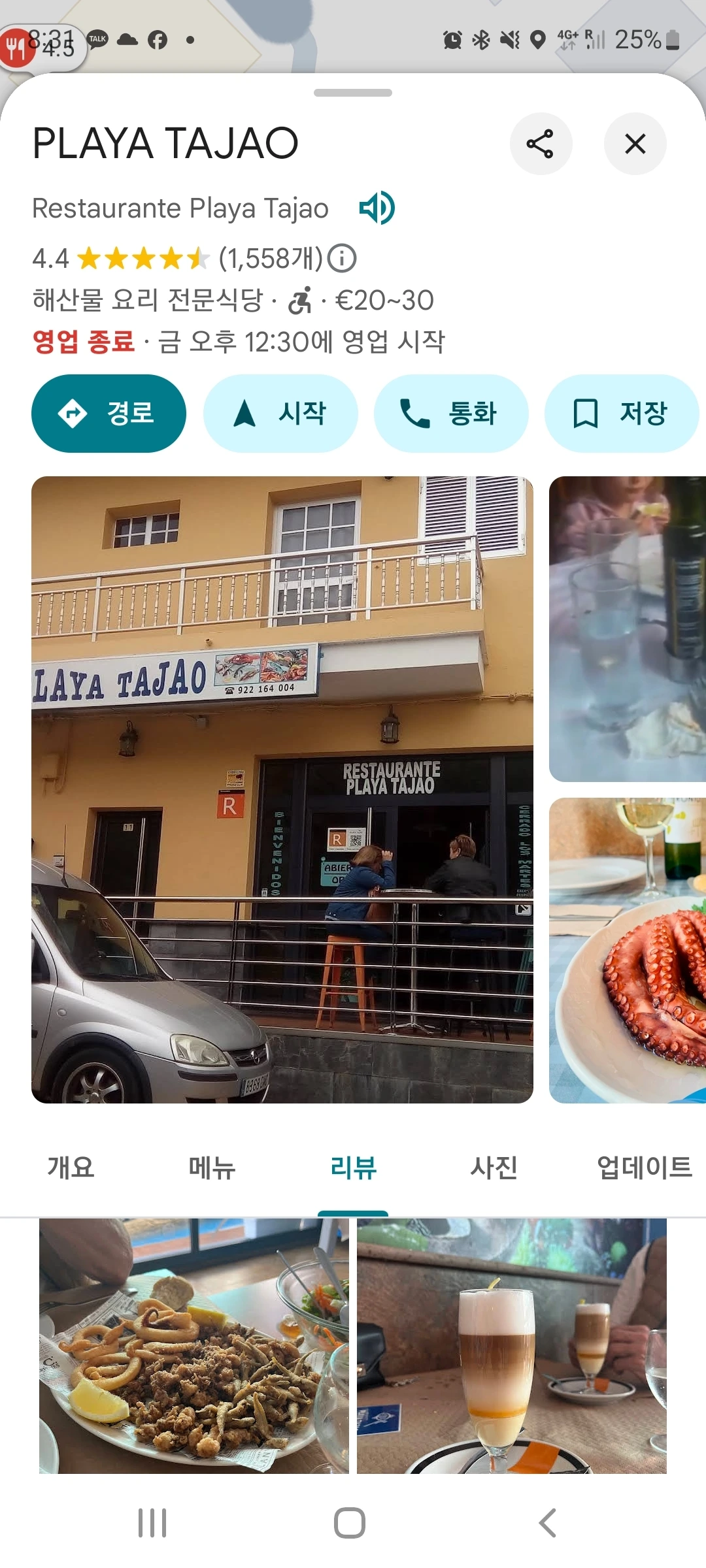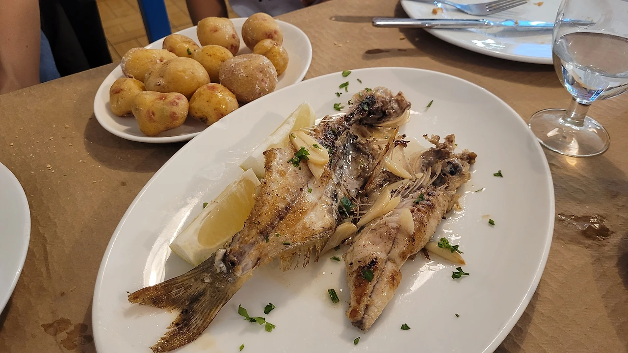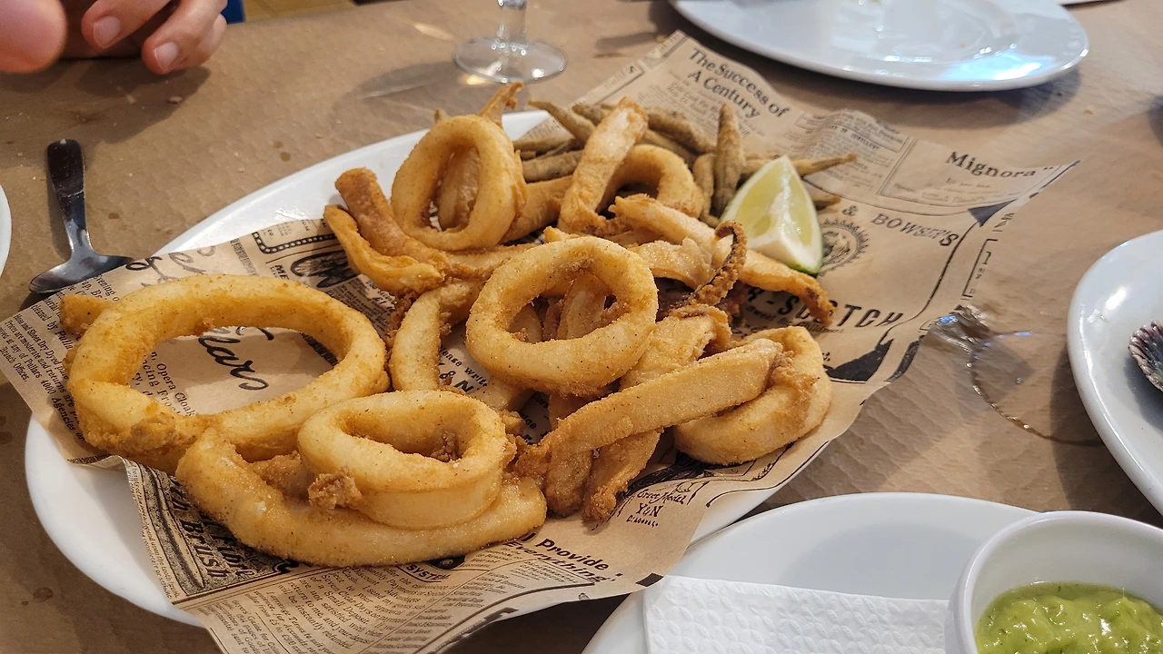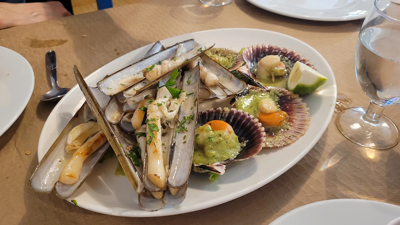 오징어는 튀기고, 조개류는 화이트와인으로 조리하고 구운 생선과 감자까지.. 스페인에 와서 처음으로 제대로 된 요리를 먹어서 감개무량이었다.