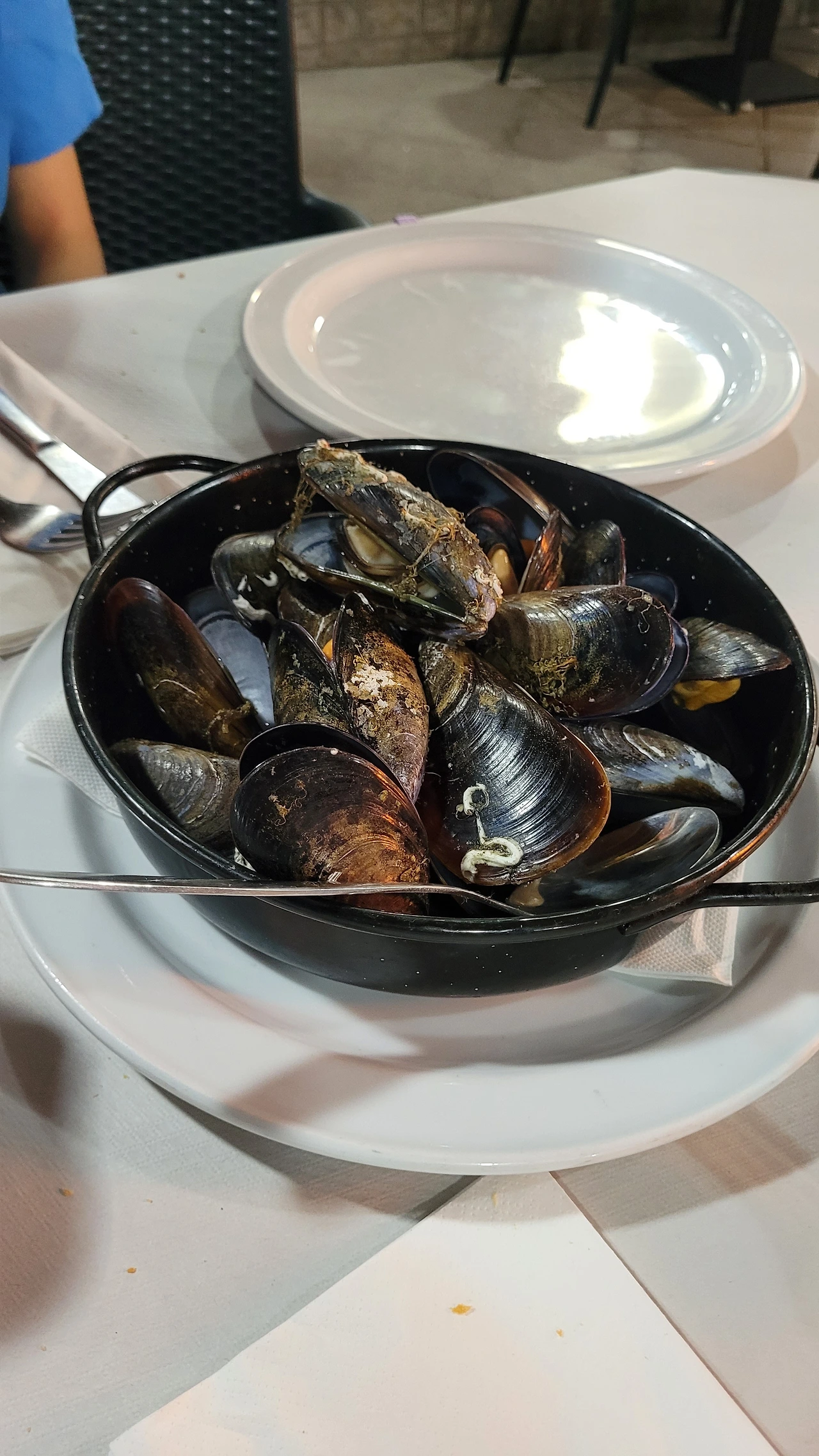 아이들을 위해 오징어튀김을 시키고 문어구이, 홍합요리, 빠에야를 시킴. :)