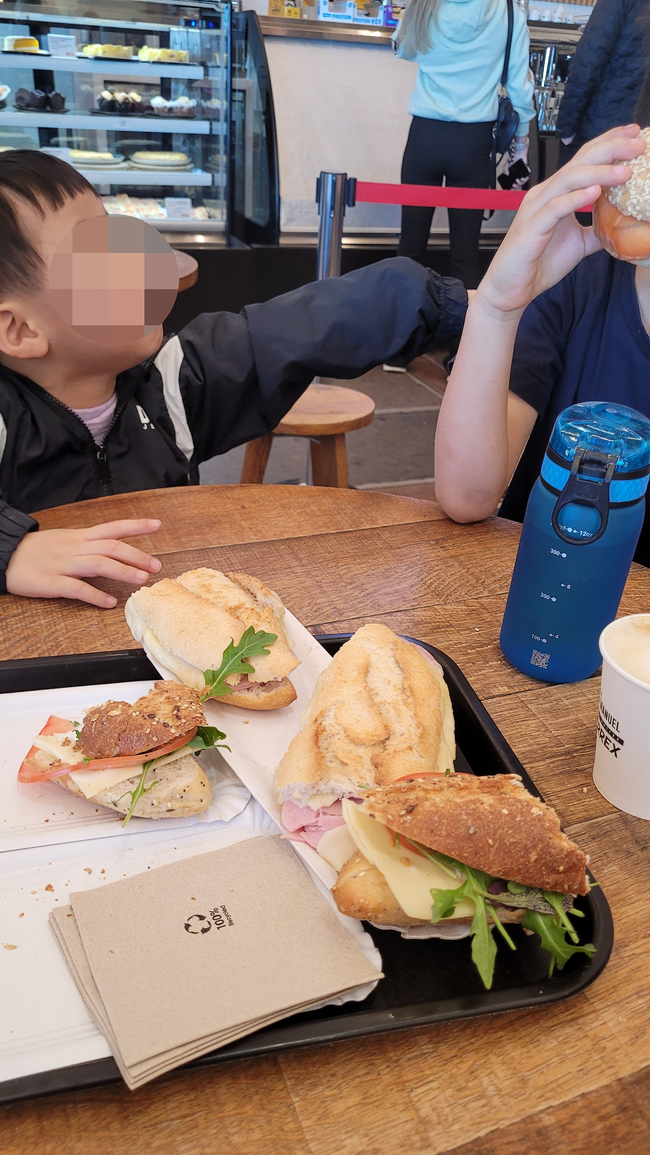 야채가 가득한 음식을 먹었으면 좋겠는데 둘째는 햄치즈 샌드위치를 먹는다.