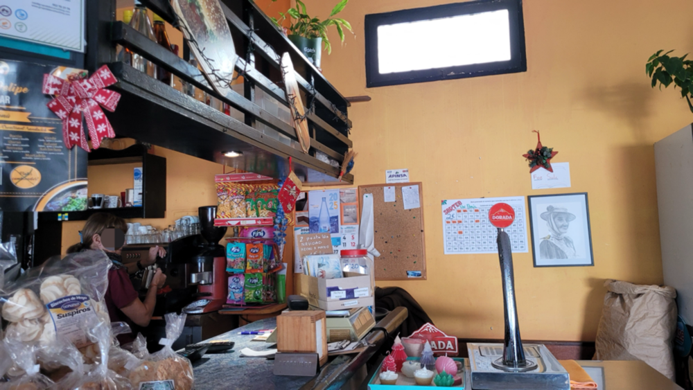어제저녁에 맥주를 마신 동네 바에 커피를 사러 갔다.