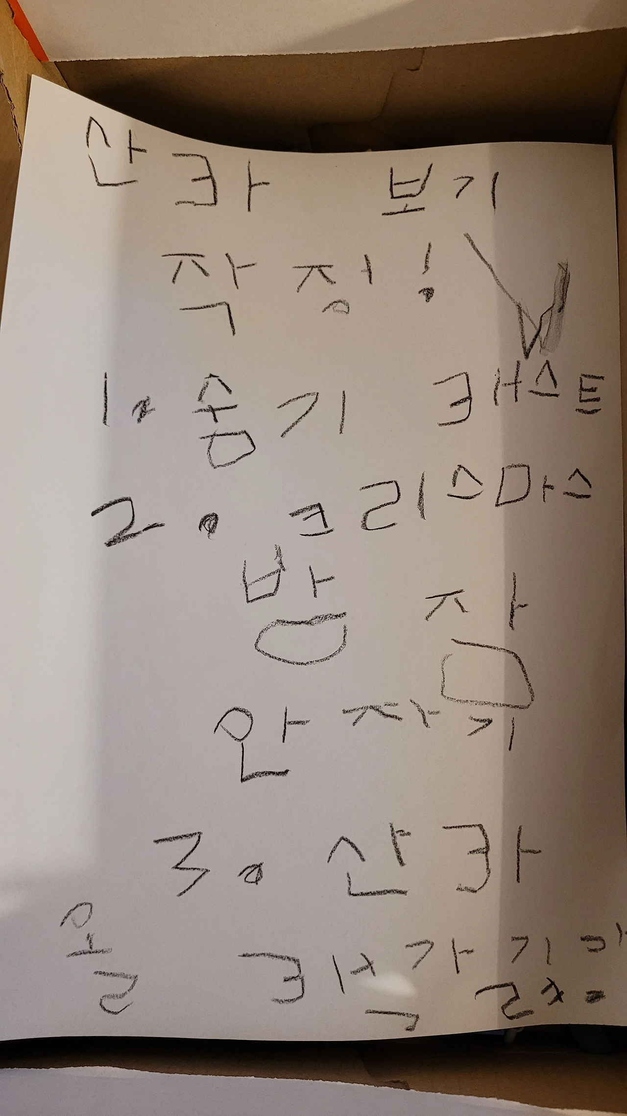 집을 정리하다가 발견한 6살이었던 둘째의 메모.