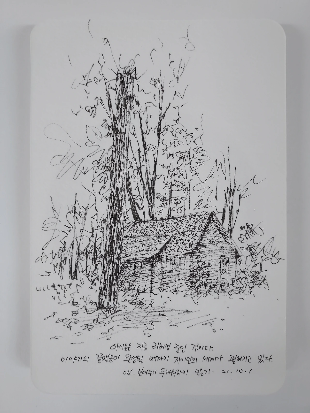 그림 보여주는 걸 가장 좋아했을 때가 언제인지 생각해 보면 이 시기쯤이었던 것 같다. 하얀 종이 위에 형체가 드러나는 과정이 즐거웠고, 그 형체가 품은 나만의 이야기가 좋았다. 그림이 혼자만 알아볼 수 있을 만큼 형편없이 그려져도 상관이 없었다. 중요한 건 그림의 완성도가 아니어서 그림 그리는 것에 거리낌 없었던 것 같다. 뭔가를 그릴 때마다 보여주기 위해 들고 다녔다. 자랑하고 싶고, 꺼내고 싶은 것들이 많았다. 사소한 것 하나까지 보여주고 싶었다. 그림으로 관심받는 것은 집 밖에서 뛰어노는 것만큼 신나는 일이었다. 어쩌면 보여주고 싶은 마음이 그림을 그리게 했던 것 같기도 하다.