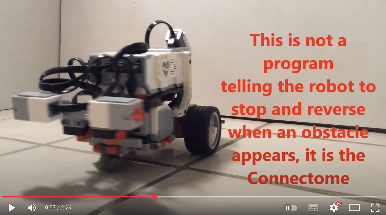 이후 세계 최초의 디지털 생명체를 만드는 것을 목표로 하는 OpenWorm 프로젝트에서 연구자들은 이 예쁜 꼬마선충의 신경망을 디지털로 재현해서 로봇에 그대로 이식하는 실험을 했습니다. 결과는 놀라웠습니다. 로봇은 먹이 찾기, 회피 같은 기본 행동을 실제 선충처럼 흉내를 냈죠. '벽을 만나면 돌아가라'는 행동강령은 자연스러워 보이지만 사실 프로그래밍 되지 않으면 절대 불가능한 일입니다. 하지만 신경 정보를 이식한 이 로봇은 if - then 식으로 정해진 알고리즘 없이, 수많은 데이터로 학습된 추론능력 없이, 그냥 꼬마선충의 본능에 따라 길을 찾았습니다.