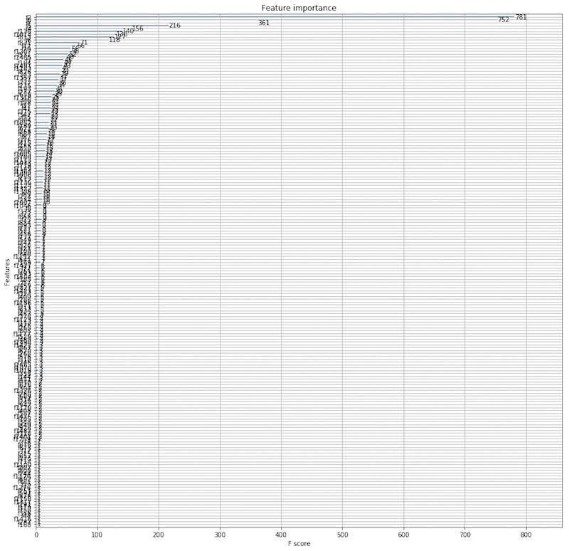 이제 코드를 돌려 보자. 코드는 예제를 참조[7]했고, 트레이닝 데이터 세트만 있기에 완벽한 실험이라곤 할 수는 없다. 그렇지만 xgboost의 강력한 기능인 Feature Importance를 확인하기엔 더할 나위 없다.