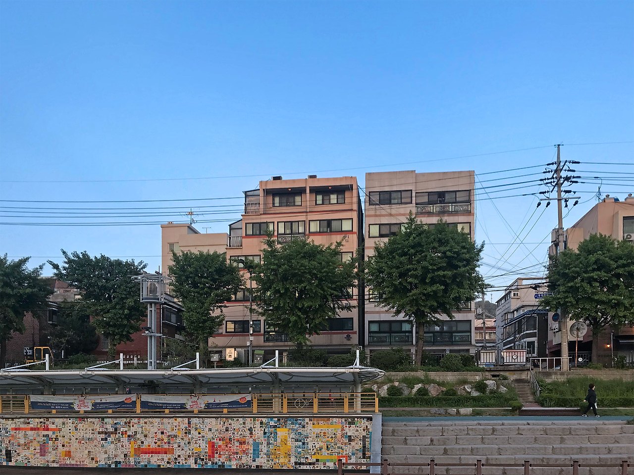 돌아가려던 찰나, 등 뒤로 "고맙습니다" 하는 소리가 들립니다. 저는 뒤를 돌아 "좋은 시간 보내요"하며 답례합니다. 이제 둘은 웃는 얼굴로 서로를 바라보며 대화합니다. 거리는 충분히 멀어 무슨 말을 나누는지 들리지 않습니다.