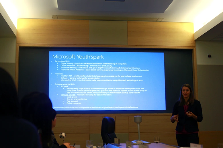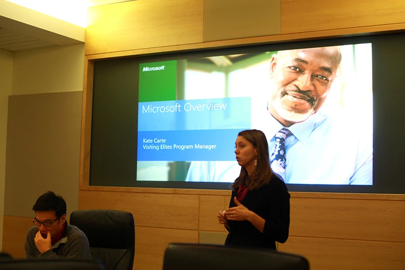 케이트가 마이크로소프트의 설명을 맡았다. 그녀는 우리에게 마이크로소프트 서비스를 쓸 수 있는 프로모션 코드와 클라우드에 대해 설명했다. 여행 당시 가장 핫한 기술은 클라우드였다. 그녀는 마이크로소프트가 현재 클라우드에 워드와 프레젠테이션, 엑셀 등 오피스 프로그램을 옮기고 있다고 말했다. 만약 이 기술이 상용화될 경우, 인터넷 속도가 보장된다는 전제 아래 낮은 수준의 하드웨어로도 마이크로소프트의 여러 프로그램을 제어할 수 있을 것이라고 했다. 그녀는 자신감이 넘쳤고, 매력적이었다.