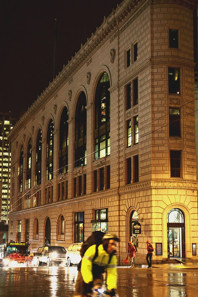 나는 방향 감각도 없이 정처 없이 걸었다. 차들이 들어가는 방향을 따라 들어갔다. 다행히 도심이 보였다. 눈 앞에 환상적인 건물 하나가 들어왔다. 주머니에서 손을 빼 얼른 사진을 찍었다. 이 건물이 시애틀 공공 도서관인지 알게 된 것은 여정 이후에 검색을 통해서였다.