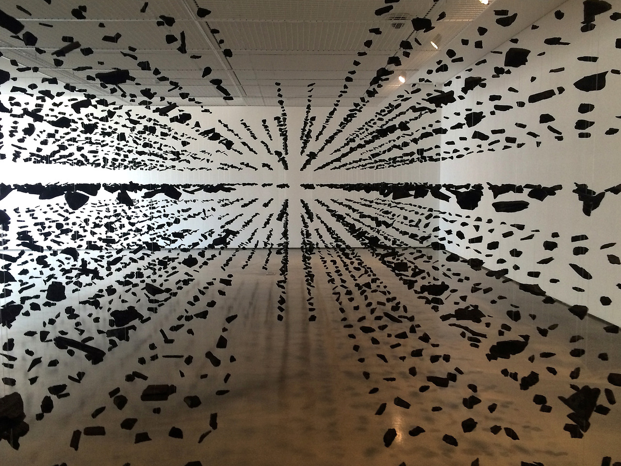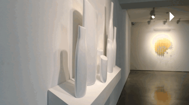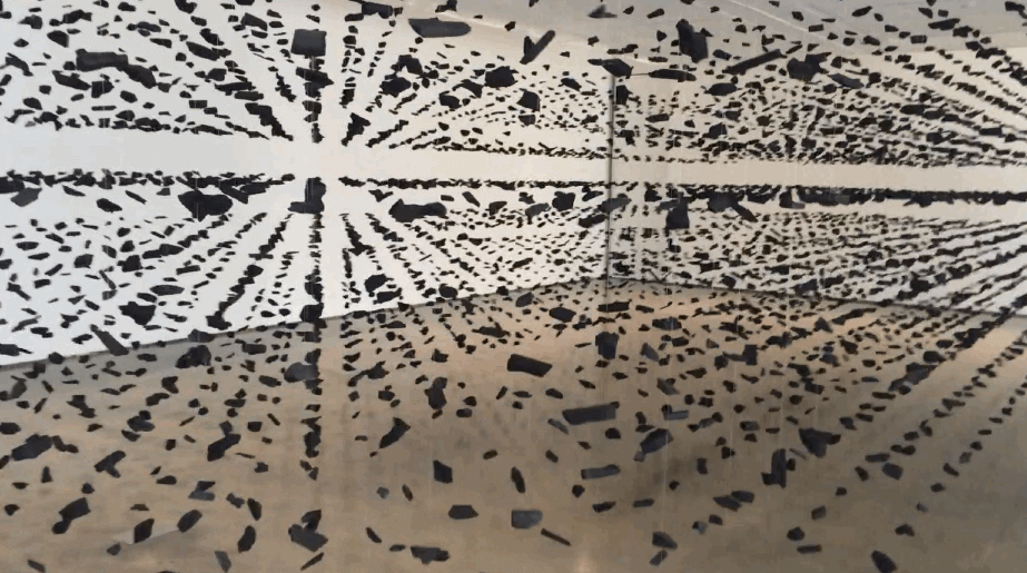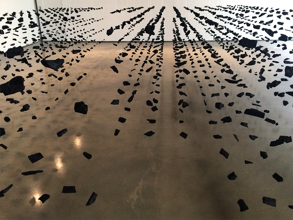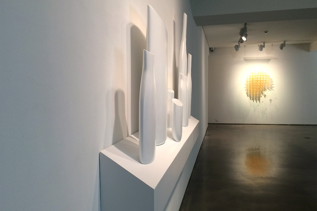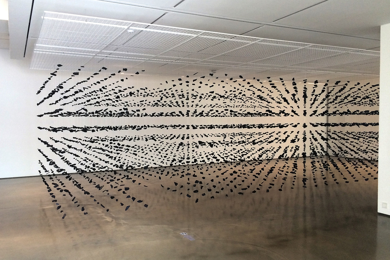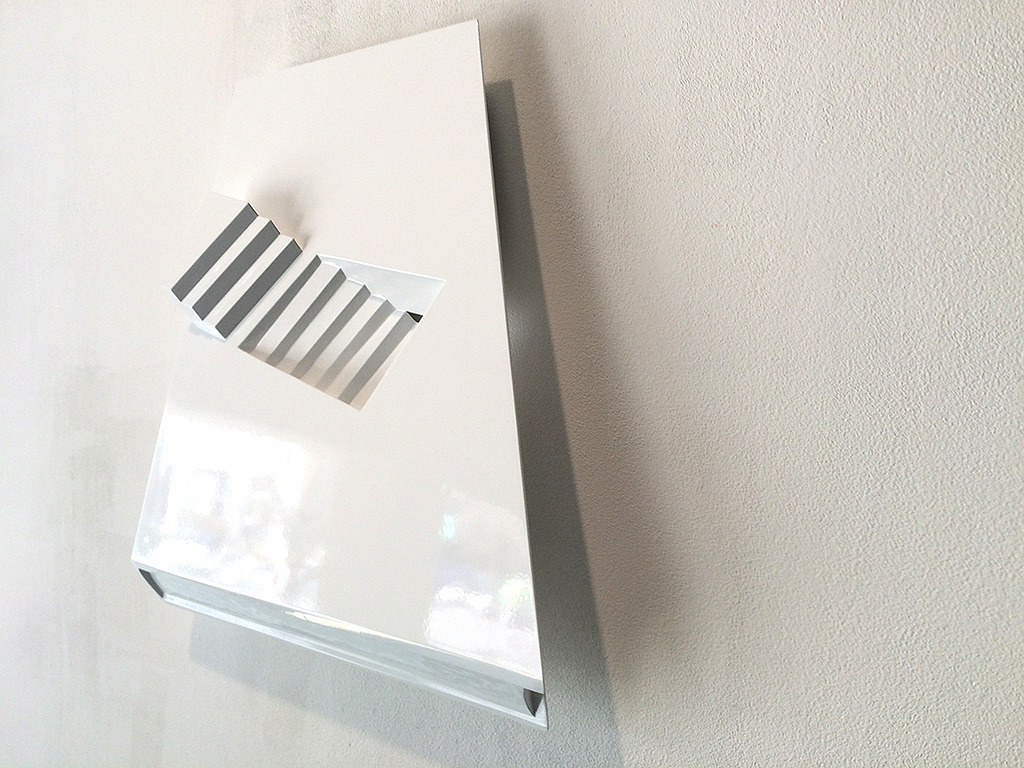 작가는 시점을 바꿀 때마다 공간을 축소했다가 늘어났다 하는 작품을 완성한다. 이것은 오브젝트이지만 관람자의 시야에 들어오는 순간 면으로 그 차원이 한 번 축소된다. 관람자가 시선을 움직이며 면을 만지기 시작하면, 그것은 면에서 선으로, 선에서 점으로 무를 향해 한없이 소실한다. 작품은 시점의 변화에 따라 부활과 소멸을 반복한다.