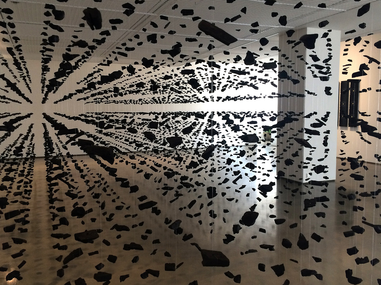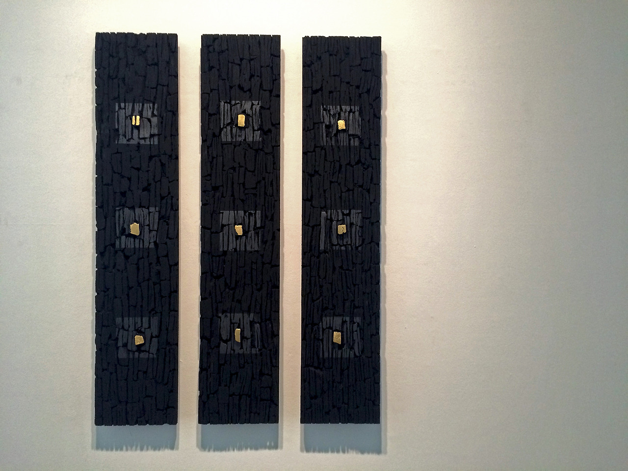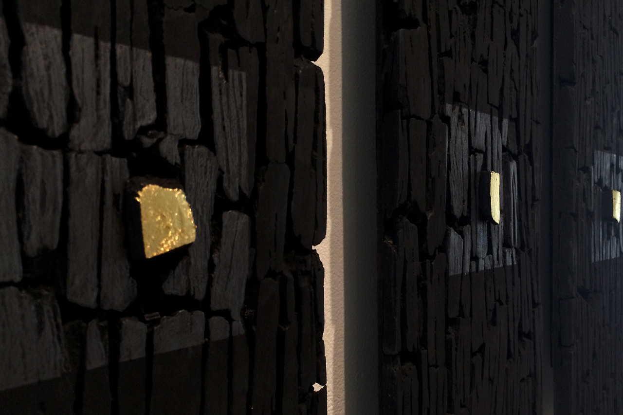 박선기는 3년 전부터 숯이라는 재료를 가지고 나무를, 그리고 숲을 완성하는 실험을 했다. 새까맣게 타 버린 숮 위로 사각형의 연필 자국(흑연)이, 그 위에 금박이 씌워져 있다. 공식 설명을 참고할 순 없었으나 흑연과 숮이라는 나무 위 요소에서 뽑아낸 본질이 황금(진리)로 승화된다는 느낌을 받았다.