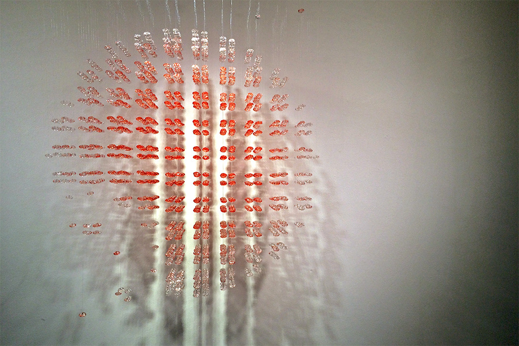 작품은 관람자의 움직임에 맞춰 알아볼 수 있는 형상에서부터 소실되기 직전까지의 선으로 생과 사를 반복한다. 우리의 눈에 보이는 것은 색이지만 그것의 본질은 공이다.