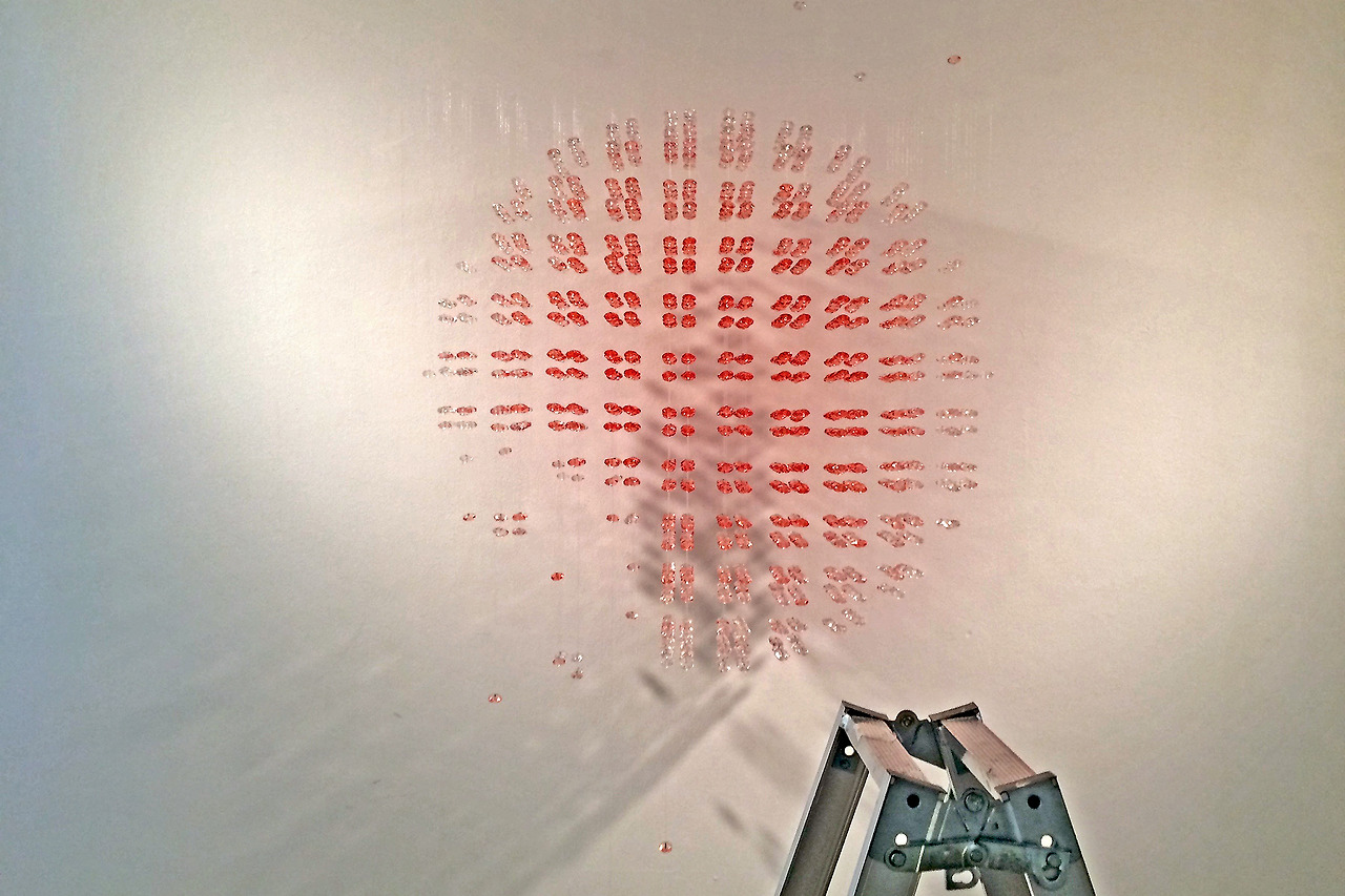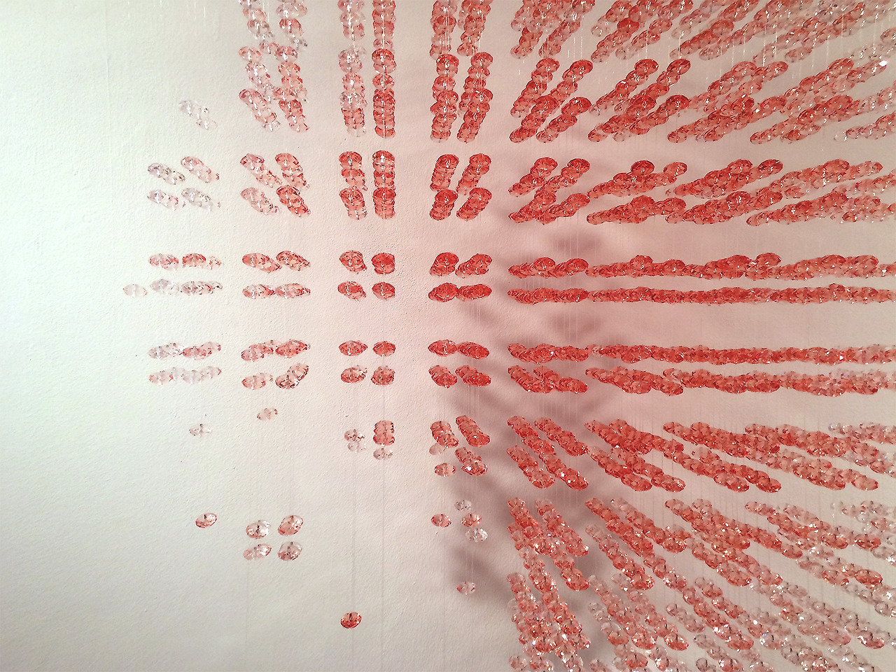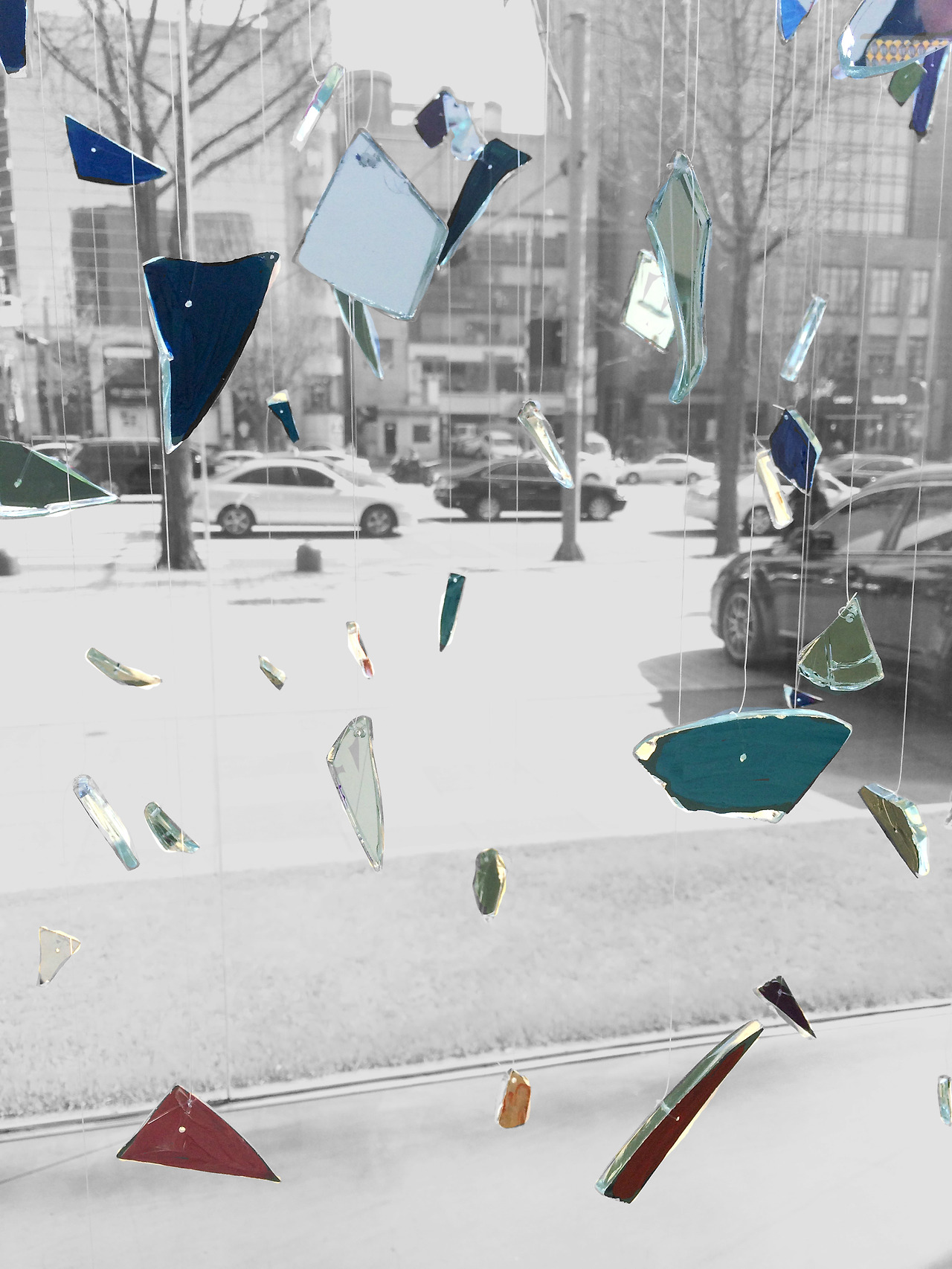 작품은 그 자체로서의 의미보다 감상자와 바깥 풍경과 함께 완성된다. 깨어진 색 조각 사이로 비치는 바깥 모습과 본인의 모습은 번갈아가면서 차원을 축소 / 확장하며 감상자와 소통한다.