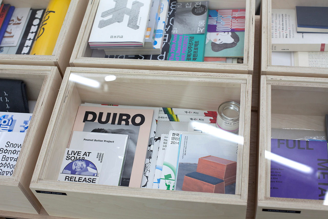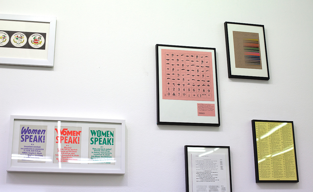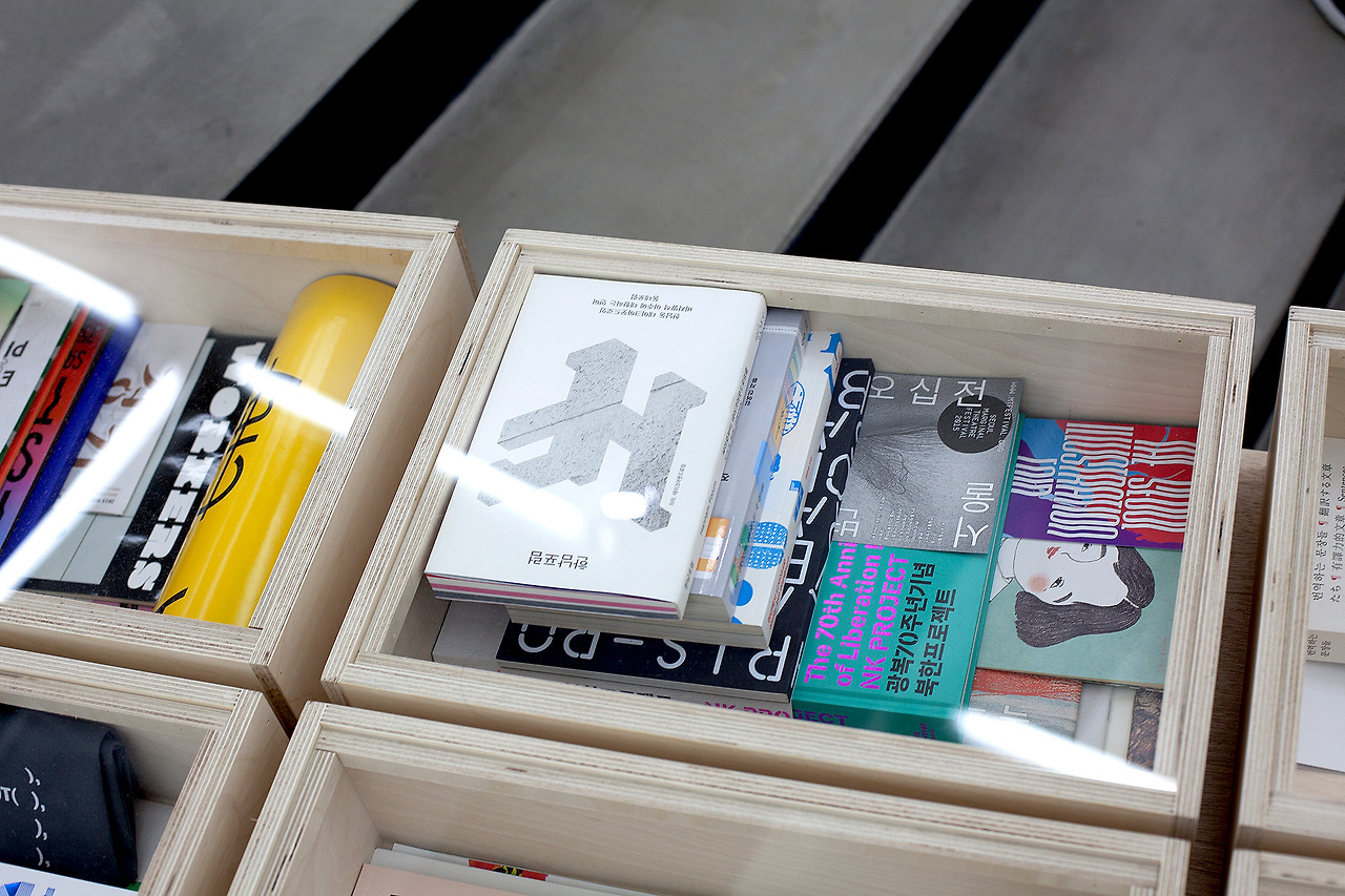 작품을 전시하기 위해 만든 간이 테이블은 1층 전시실 계단과 호흡한다. 큐레이터는 전시장의 가장 낮은 계단부터 가장 높은 단까지 높이를 맞춰가며 전시대를 제작했다. 관람객들이 무심결에 지나칠 수도 있는 부분이지만 이것은 그래픽 디자이너들의 작품들을 공평하고 동등하게 보여주기 위한 고민의 산물이다.