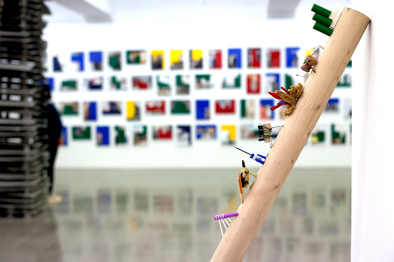 <3차원 세계의 화답>은 지난 10년간 생산된 그래픽 결과물을 대형 설치물과 소품 101점으로 재해석한 작품이다. 제목 그대로 2차원 그래픽에 보내는 길종상가식 3차원 화답이다.