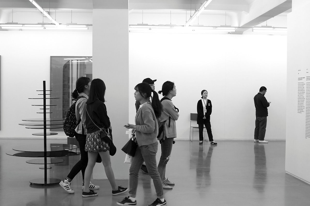 전시실에 들어가기 전. 창밖을 바라본다. 벌써 봄이다. 보온을 위해 입었던 두툼한 외투들은 모두 집에다 넣어 두고, 움트는 봄을 한껏 맞이한다. 일민미술관의 건물 외벽은 크림 색이다. 밖에서 보면 그 모양새 덕분에 딱딱하고 품위 있는 기관 같다. 하지만 미술관 안쪽은 따뜻하고, 한껏 열려있다.