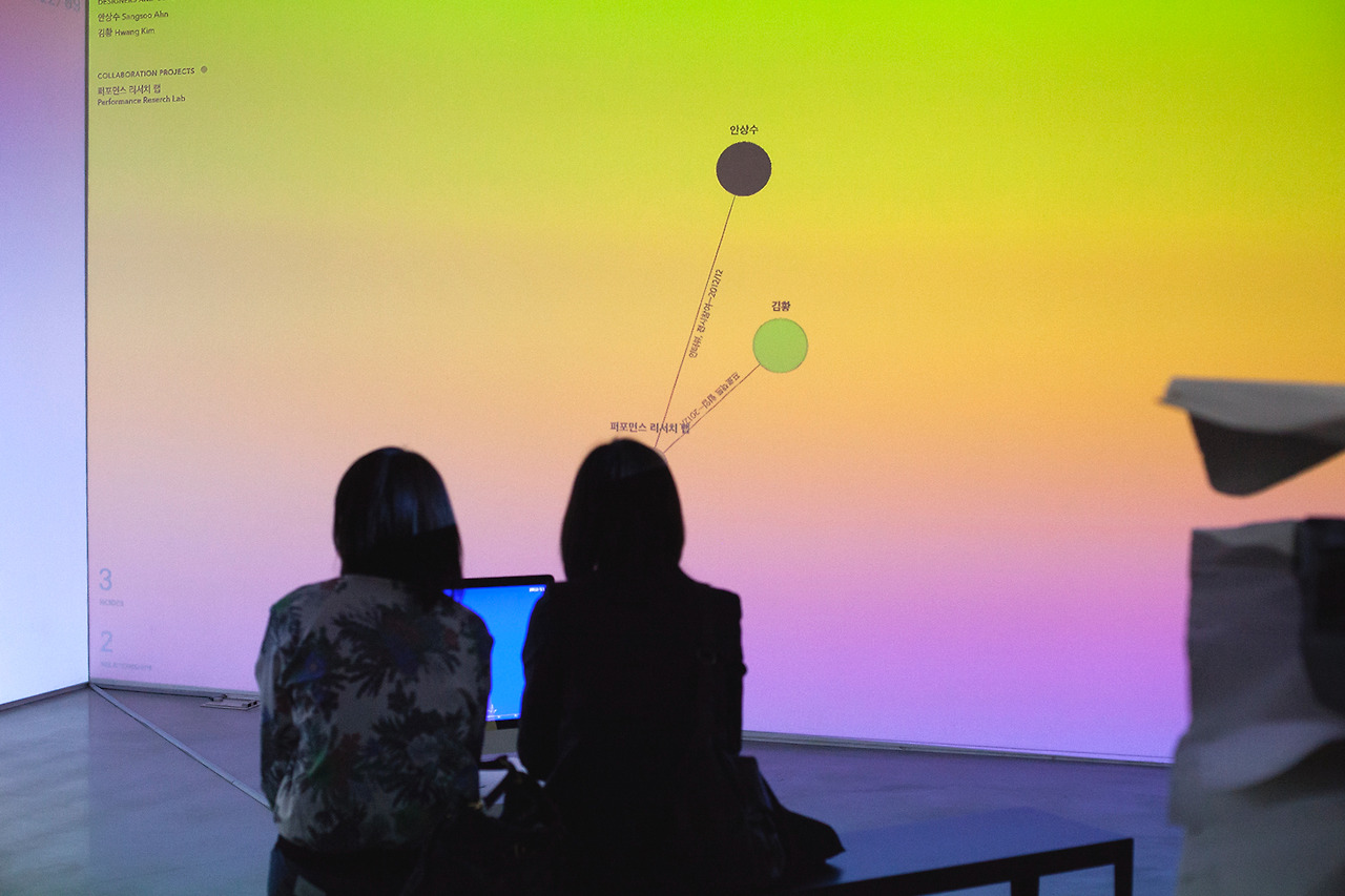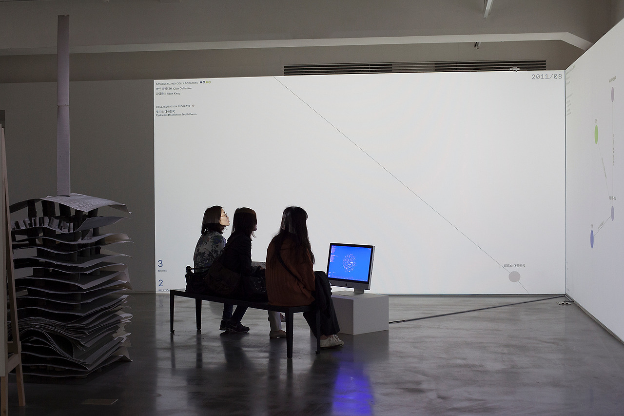 디자이너 홈페이지, 국립중앙도서관 서지 정보, SNS 등에서 끌어온 자료를 근거로 작성된 네트워크 지도에서, 그래픽 디자이너와 그들의 협업자, 의뢰인, 조력자는 노드(node, 동그란 부분)가 되고, 각 노드는 디자인 작업을 함께하거나 전시, 행사, 취재 등을 계기로 만난 사실, 또는 같은 곳에서 일한 사실을 매개로 연결(edge)된다.