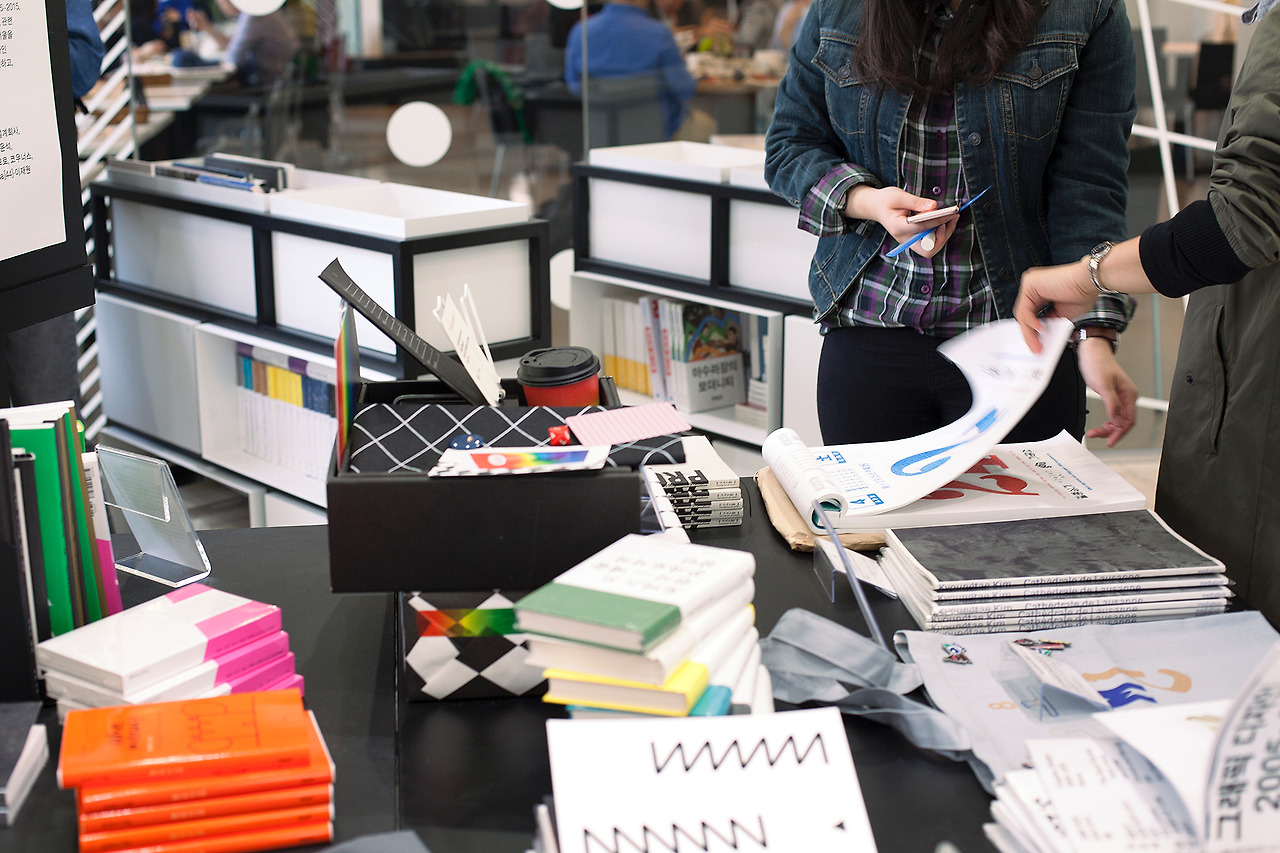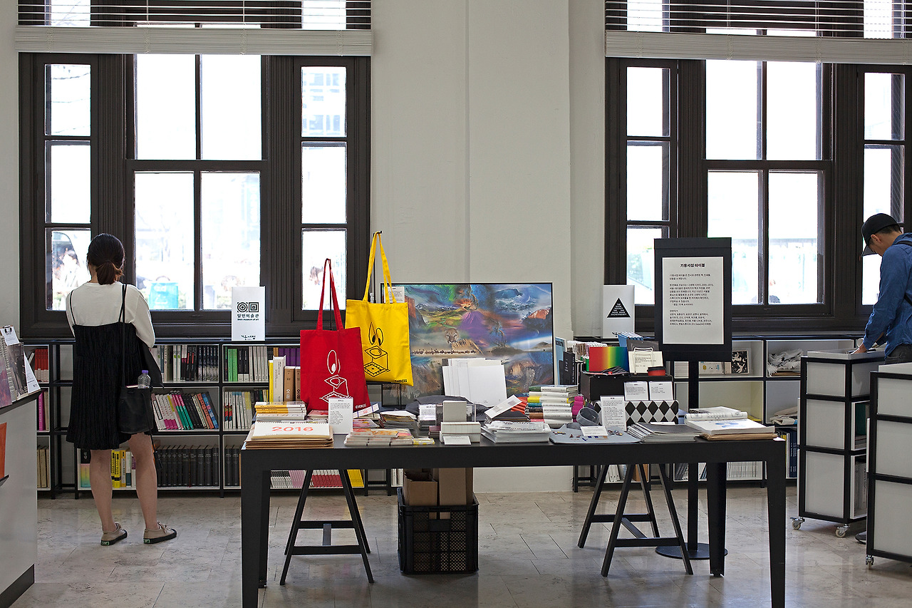 이곳에서 Sasa [44]. 코우너스, 워크룸 프레스, 김영나, 김성구 작가 등의 작품을 구매할 수 있다. 그래픽 디자인 전시가 '그래픽에 대한(about)' 전시에서 다시 '그래픽 디자인 예술'로 걸어나오는 순간이다. 전시의 대미를 장식하는 훌륭한 마무리다.