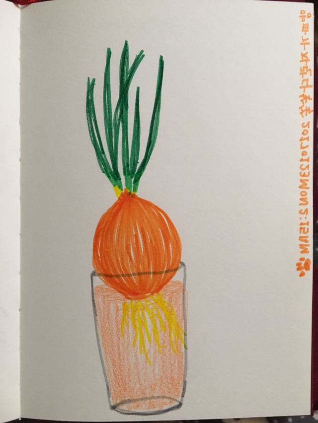 엄마가 양파를 막 수경재배(?)하기 시작했다. 첨엔 멀쩡한 양파를 왜? 라고 생각했지만 집안 곳곳에 초록초록한 녀석들이 보이니 기분이 좋아졌다.